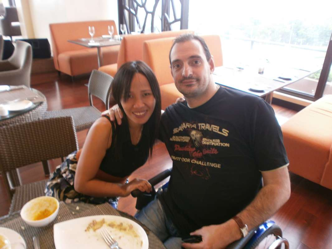 I just want to thanks this FILIPINOKISSES site to meet my lovable and handsome husband! Last year we first communicated in webcam and he decided before me that we had a good communication and that it could lead lead for marriage! Soon after 3 months we decided to meet in Manila. He came alone, that is hard for him because he is in the wheelchair. Despite that I could see that he is a very serious guy. We stood in the hotel for about 2 weeks and after that we both went to go his country in europe.